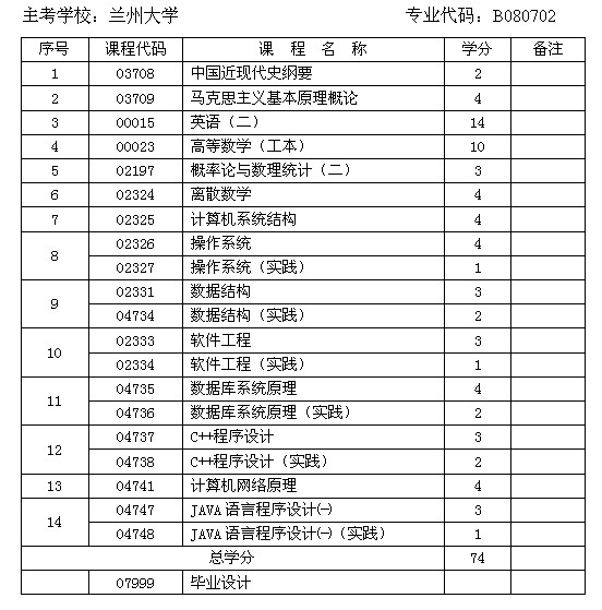 摘要 甘肅省自考計算機及應用專業專業(本科)課程設置與學分