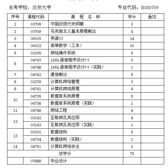 甘肅省自考計算機網絡專業(本科)課程設置與學分