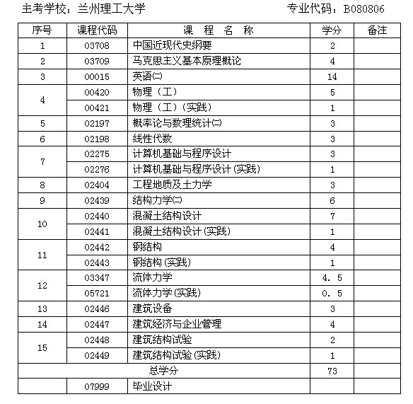 摘要 甘肅省自考建筑工程專業(yè)(本科)課程設(shè)置與學(xué)分