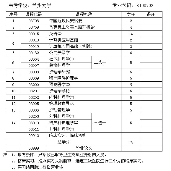 摘要 甘肅省自考護理學專業(本科)課程設置與學分