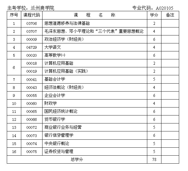 摘要 甘肅省自考金融專業(yè)(?疲┱n程設(shè)置與學(xué)分