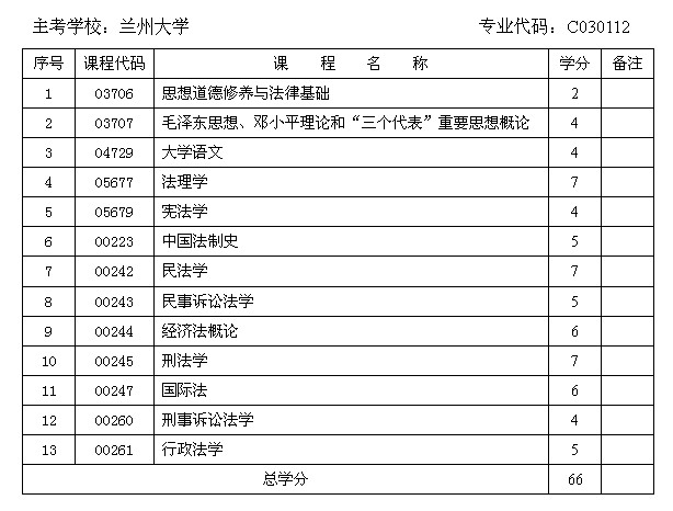 摘要 甘肅省自考法律專業(專科)課程設置與學分