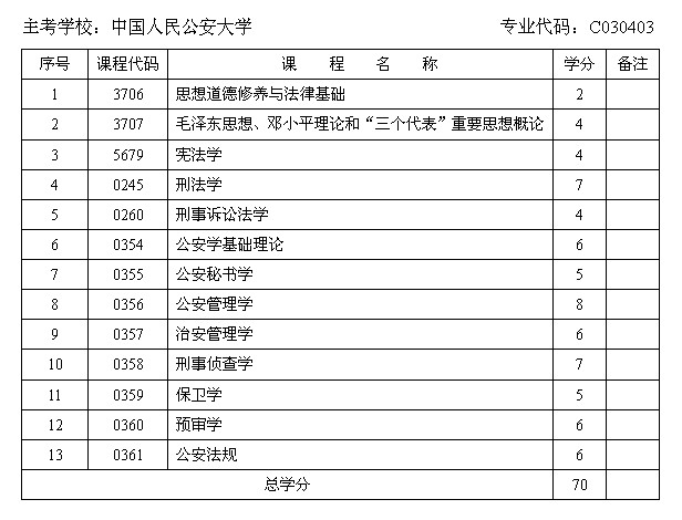 摘要 甘肅省自考公安管理專業(專科)課程設置與學分