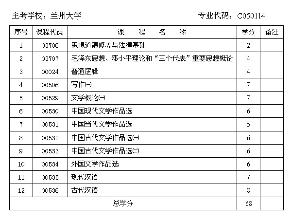 摘要 甘肅省自考漢語言文學專業(專科)課程設置與學分