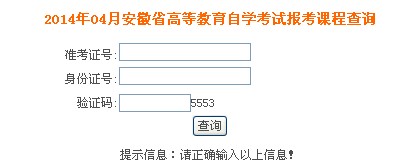 點擊進入>>安徽省2014年4月自考報考課程查詢入口