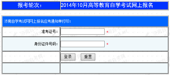點擊進(jìn)入>>山東濟(jì)南市2014年10月自考通知單打印入口