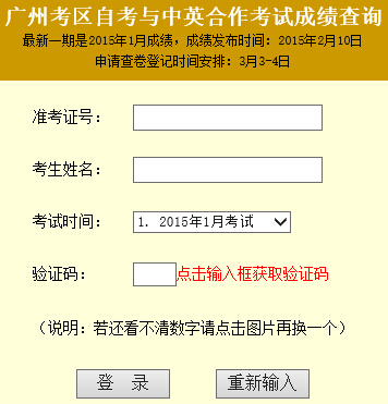 點擊進入>>廣東廣州市2015年1月自考成績查詢入口