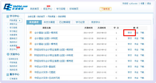 方法二:登錄會員中心,選擇已開通的課程,點擊進入聽課