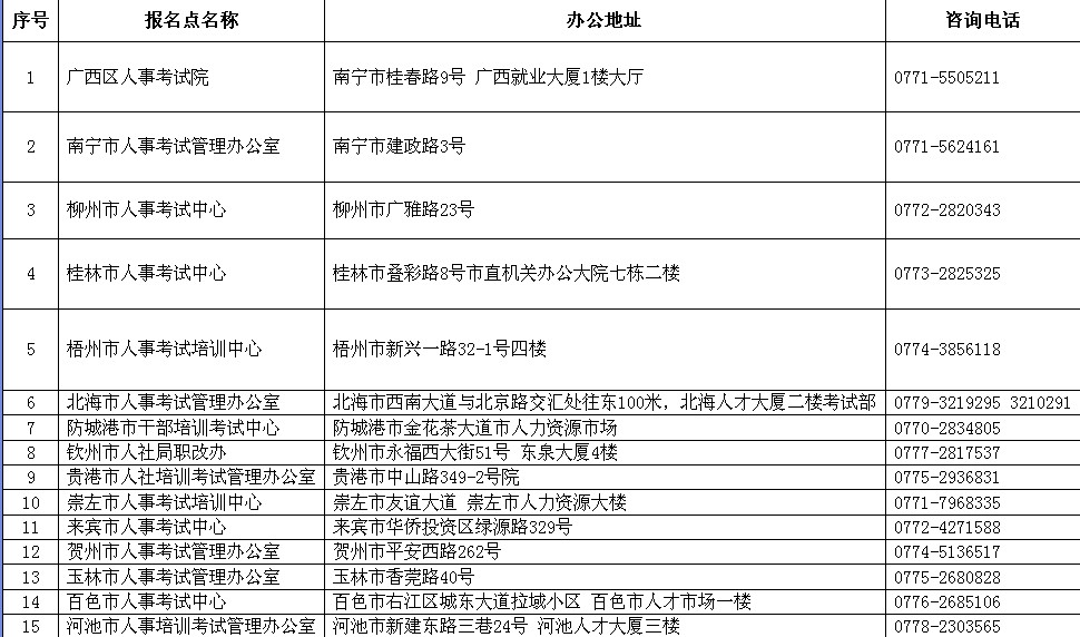 各報(bào)名點(diǎn)地址及聯(lián)系方式: