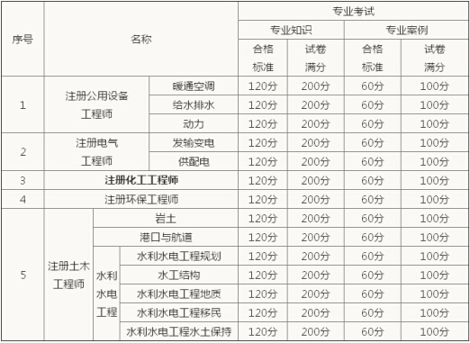 (二)注冊工程師(除一級、二級注冊結構工程師)資格的專業考試合格標準見下表:
