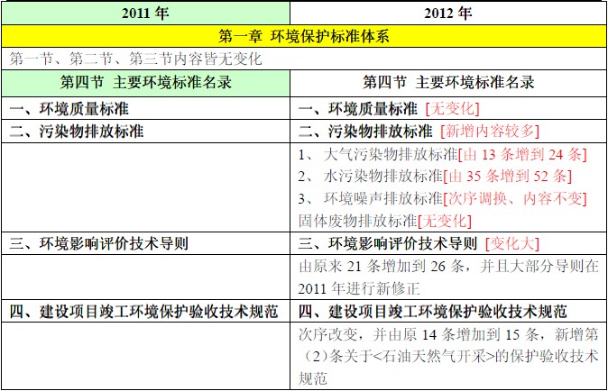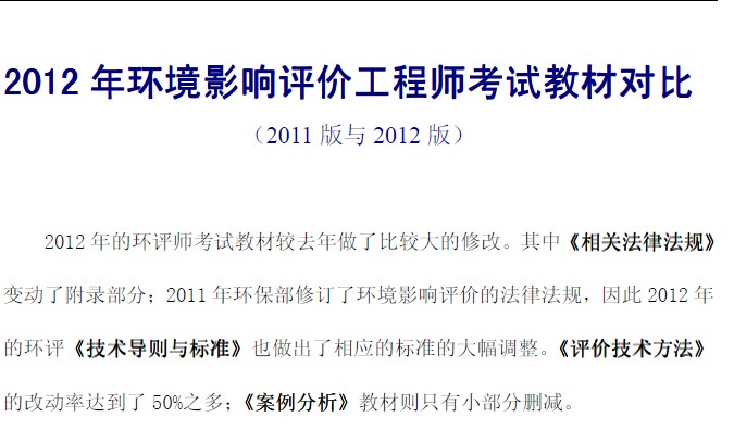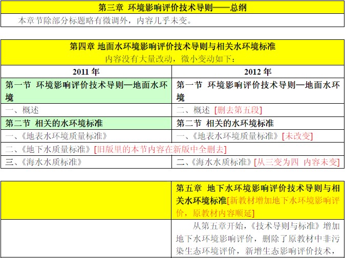 2012年《環(huán)境影響評(píng)價(jià)師》考試教材對(duì)比