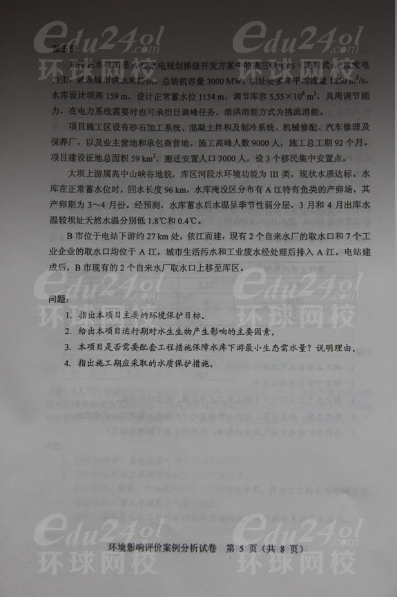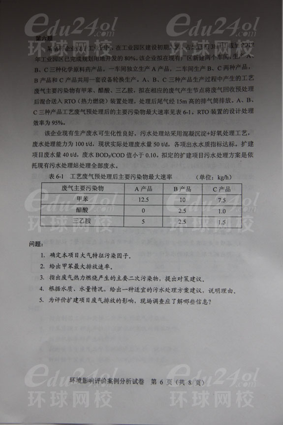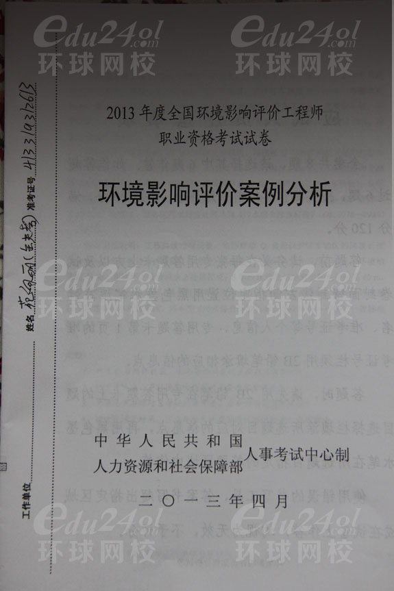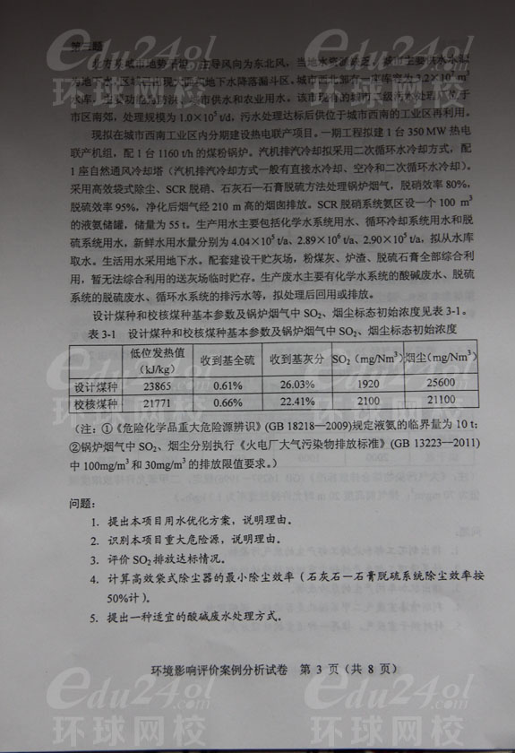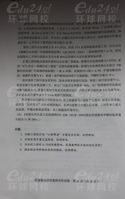 2013年環境影響評價師考試《案例分析》真題分享--環球首發