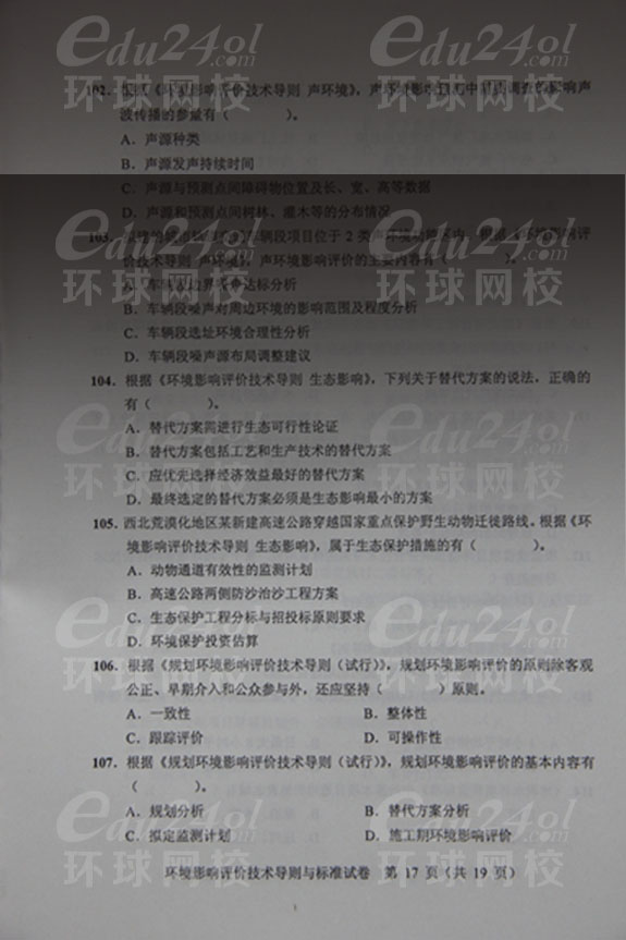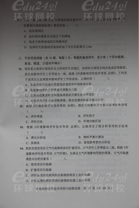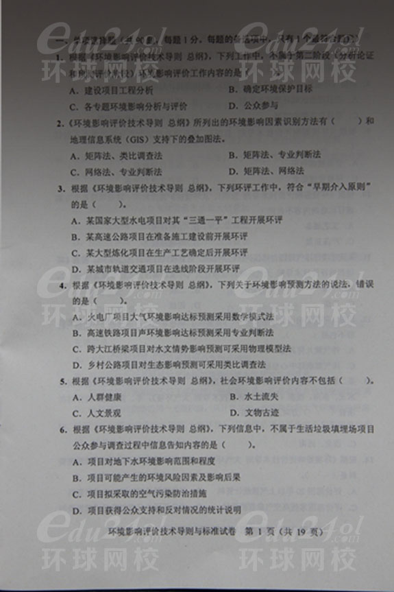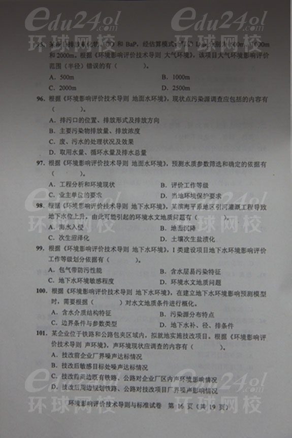 環(huán)境影響評(píng)價(jià)師考試最新真題匯總
