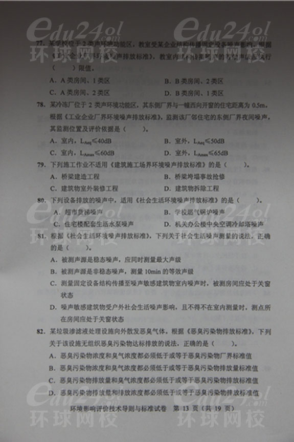 2013年環(huán)境影響評(píng)價(jià)師考試《導(dǎo)則與標(biāo)準(zhǔn)》真題分享--環(huán)球網(wǎng)校首發(fā)