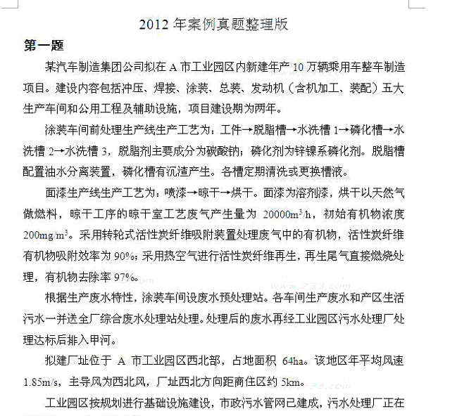 2012年環境影響評價師《案例分析》真題及答案(完整版)