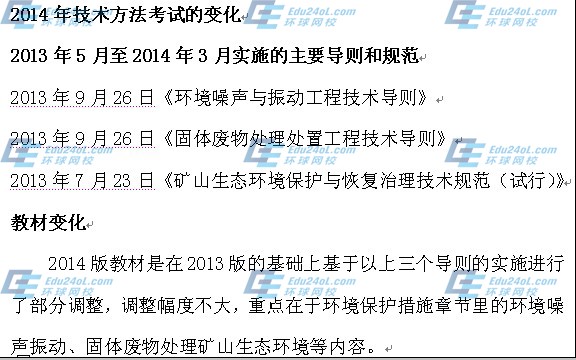 2014年環境影響評價師《技術方法》新舊教材對比