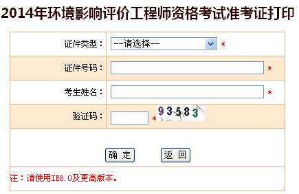 海南2014年環(huán)境影響評價師準(zhǔn)考證打印入口開通