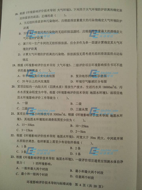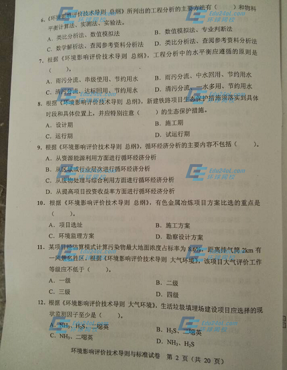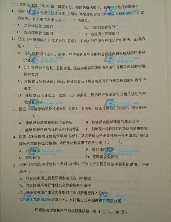 - 2025年環評師技術方法真題及答案解析-單項選擇題部分已更新!2025-06-20