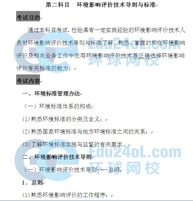 2015年環(huán)境影響評(píng)價(jià)工程師《導(dǎo)則與標(biāo)準(zhǔn)》考試大綱