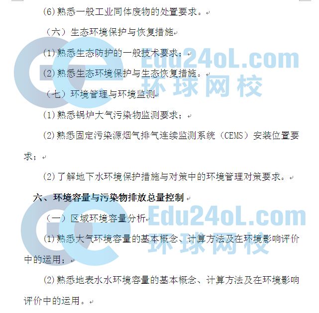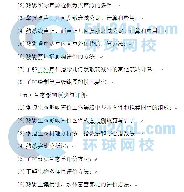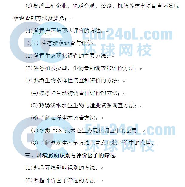 摘要 2015年環境影響評價工程師《技術方法》考試大綱如下: