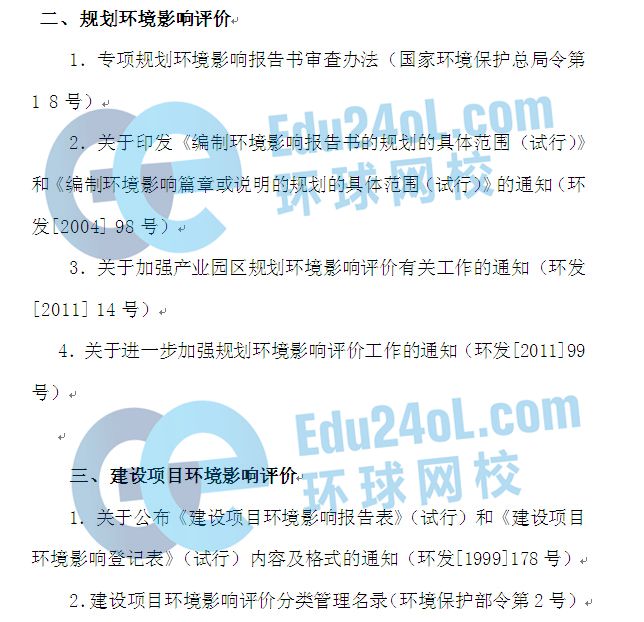 2015年環(huán)境影響評價工程師考試大綱-附錄