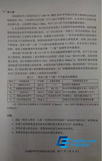 2015年環境影響評價師《案例分析》真題(環球網校首發)