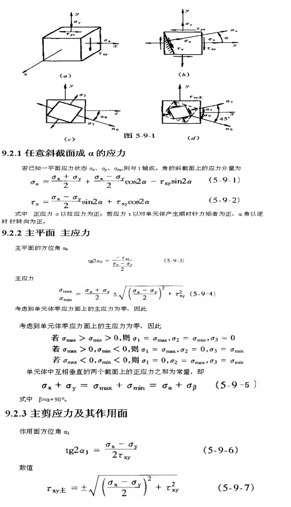 平面應力狀態通常用單元體中主應力為零的那個主平面的正投影表示如圖5―9―1所示。