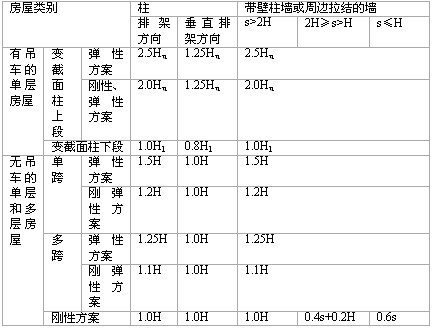 3)當Hu/Hl≥1/2時,取無吊車房屋的Ho,但在確定β值時,應采用上柱截面。