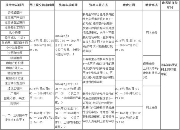 各項考試具體考試時間,請查看人事考試信息網(wǎng)首頁“新聞中心”欄目“2014年度職(執(zhí))業(yè)資格考試時間安排”文檔。