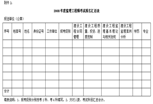 2、2008年度監理工程師考試報名匯總表(Excel格式)