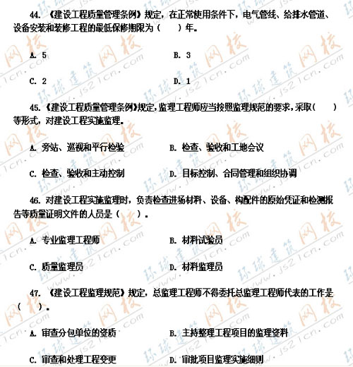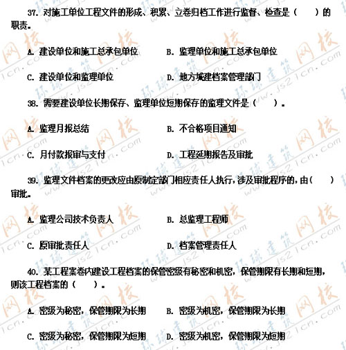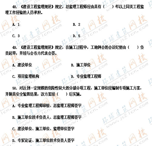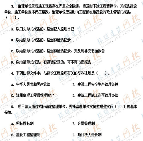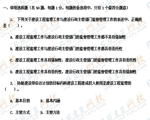 2007年監理工程師考試真題《工程建設監理基本理論和相關法規》--單選題