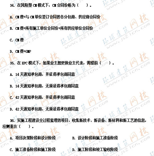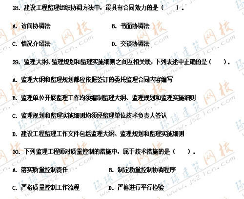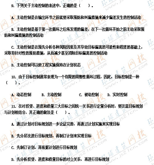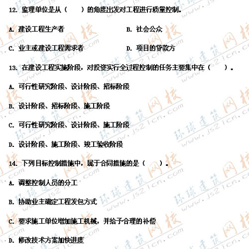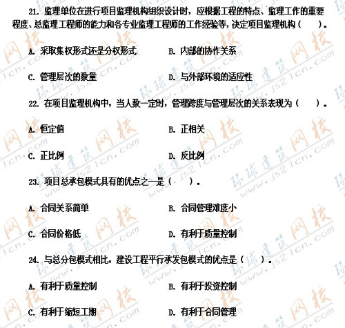 2007年監理工程師考試真題《工程建設質量、投資、進度控制》――單選題