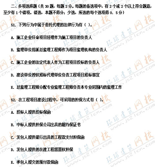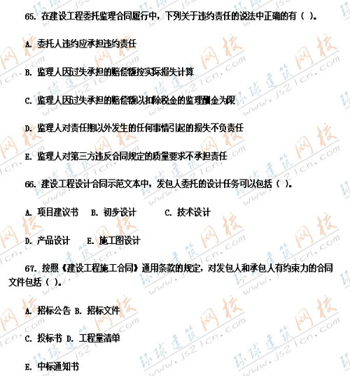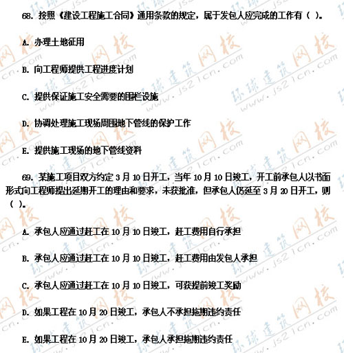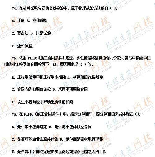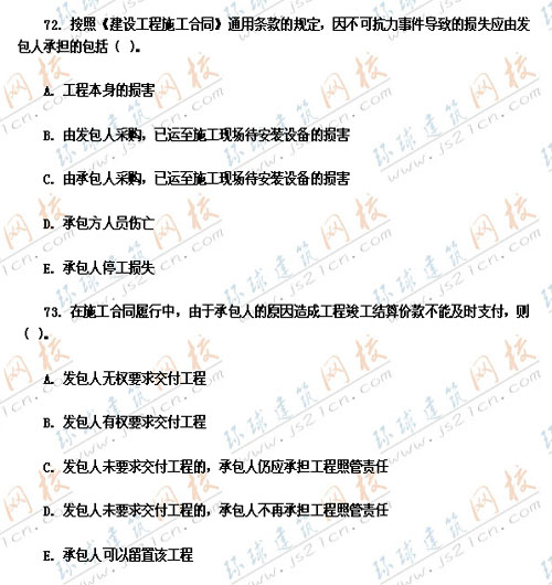 2007年監理工程師考試真題《工程建設合同管理》--多選題