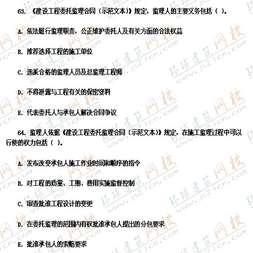 2007年監理工程師考試真題《工程建設監理基本理論和相關法規》――多選題