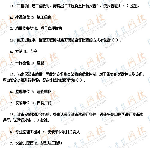 2007年監理工程師考試真題《工程建設監理基本理論和相關法規》――單選題