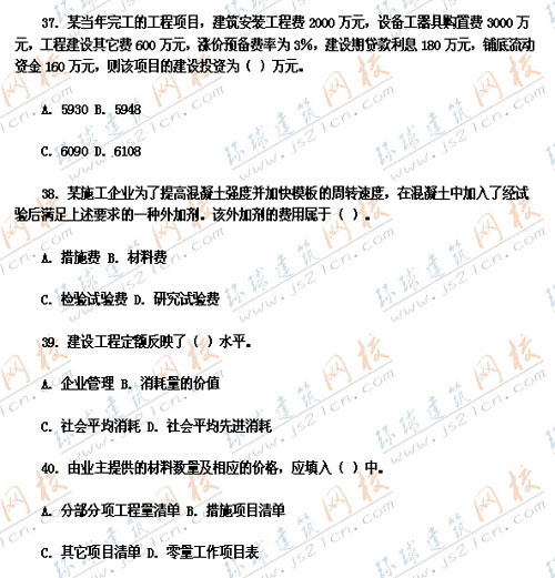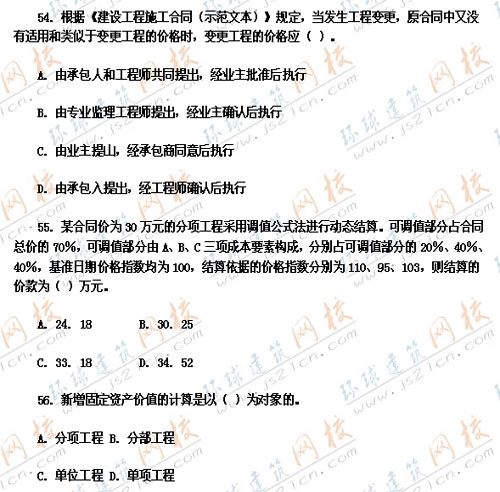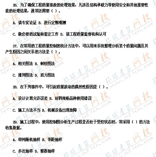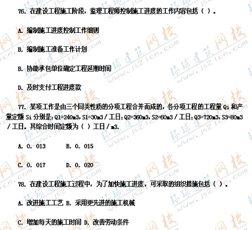 2007年監理工程師考試真題《工程建設質量、投資、進度控制》--單選題