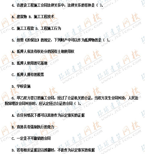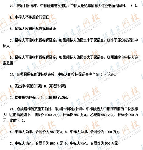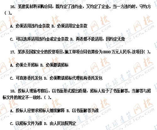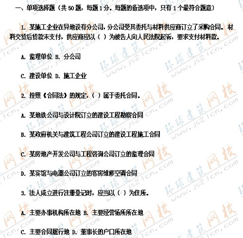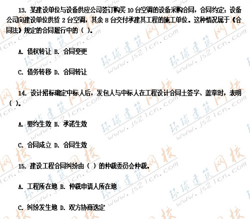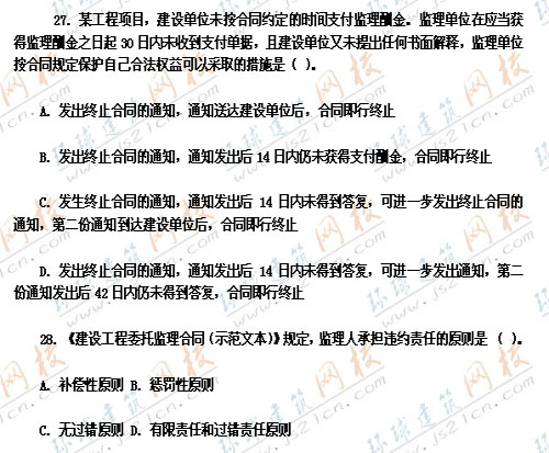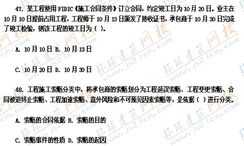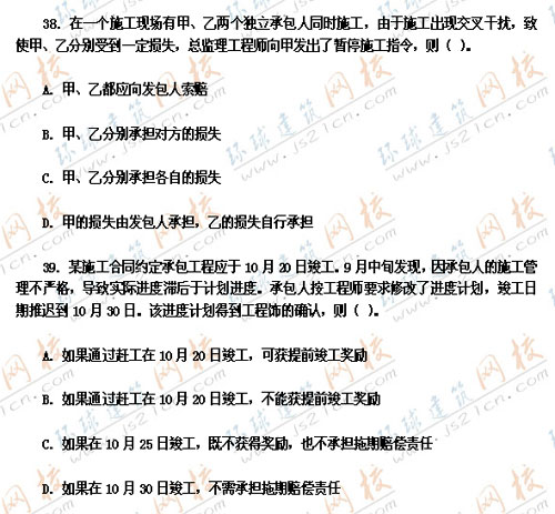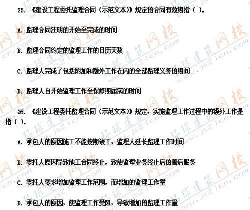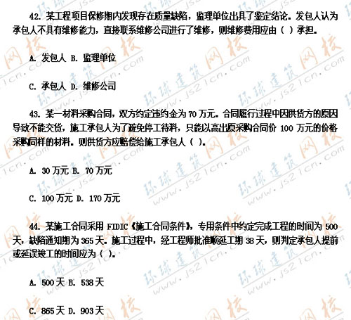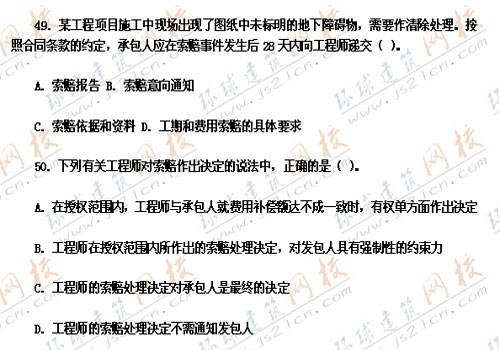 2007年監(jiān)理工程師考試真題《工程建設(shè)合同管理》――單選題