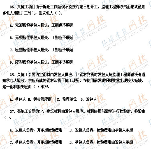 2007年監(jiān)理工程師考試真題《工程建設(shè)合同管理》--單選題