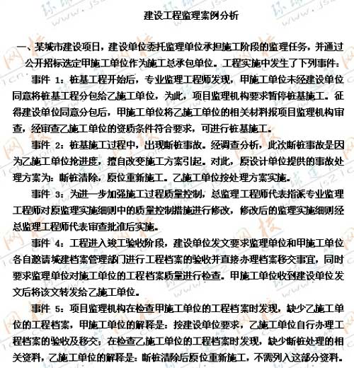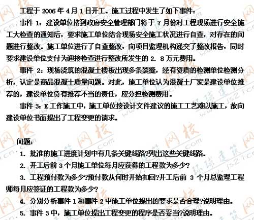 2007年監(jiān)理工程師考試真題《工程建設(shè)監(jiān)理案例分析》