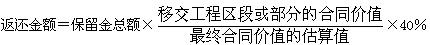 b.如果頒發(fā)的履約證書只限于一個區(qū)段,則在這個區(qū)段的缺陷通知期滿后,并不全部返還該部分剩余的保留金: