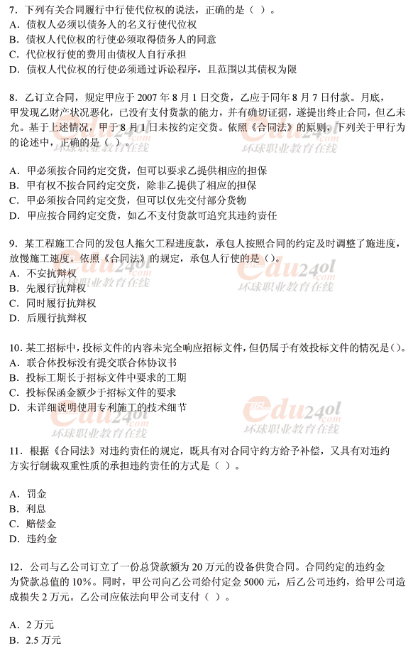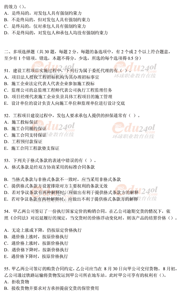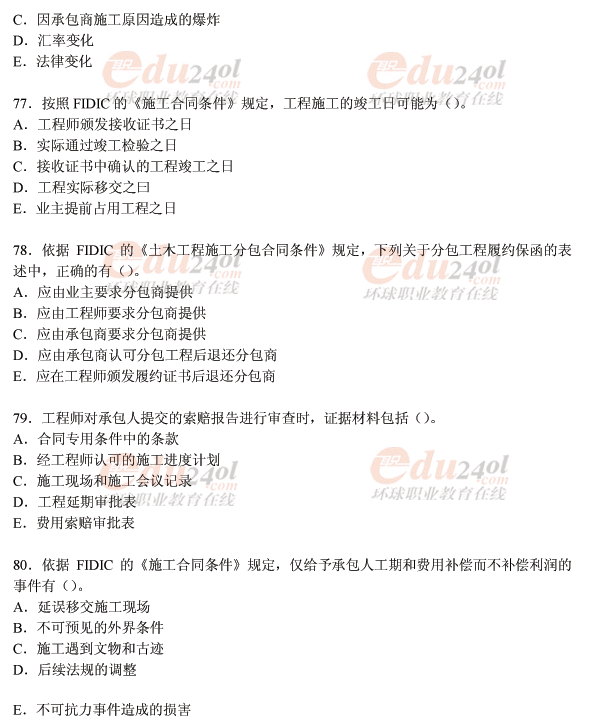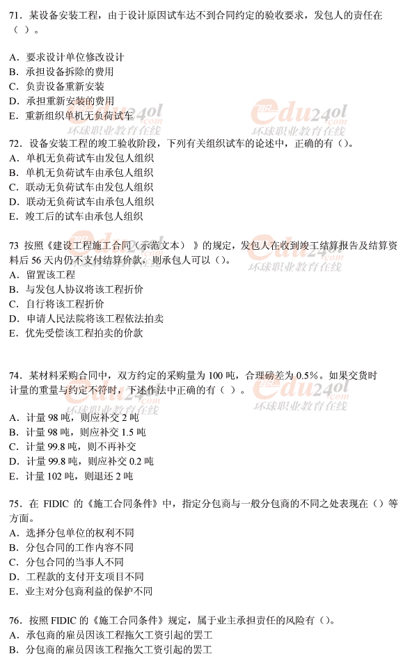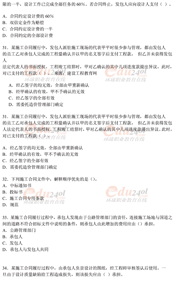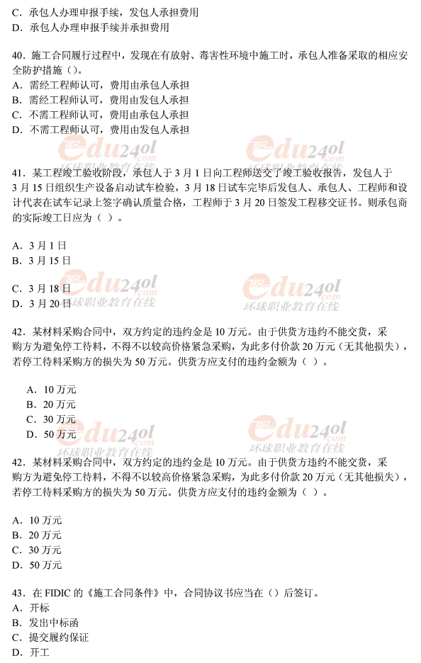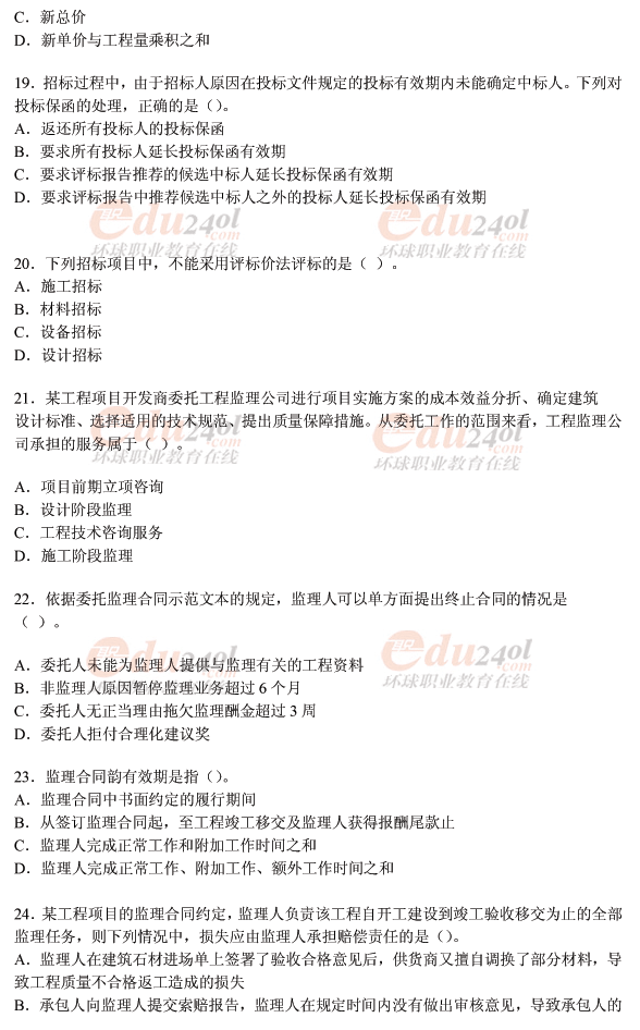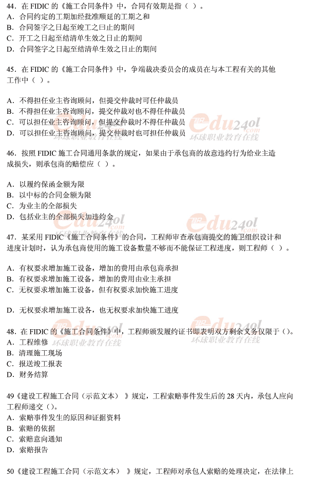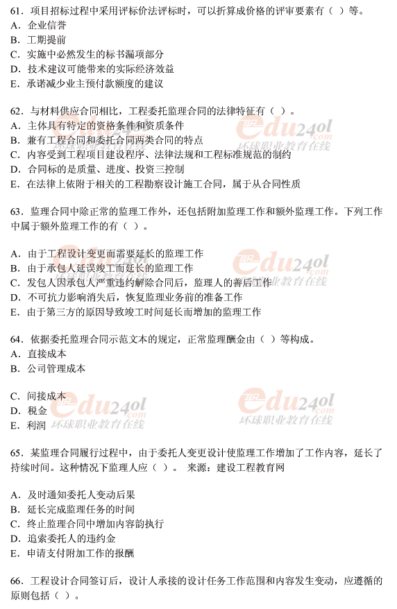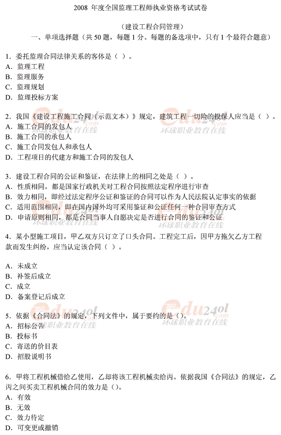 摘要 2008年注冊監理工程師考試建設工程合同管理真題