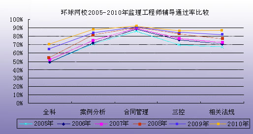 2、網校近6年來監理工程師單科輔導通過率一覽: