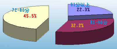 72分-80分:45.5% 81分-90分:32.2% 91分以上:22.3%