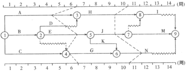 116.某工程雙代號時標網絡計劃如下圖所示,該計劃表明( )。