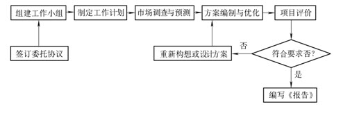 答:可行性研究的基本工作步驟大致可以概括為:○1簽訂委托協議;○2組建工作小組;○3制定工作計劃;○4市場調查與預測;○5方案編制與優化;○6項目評價;○7編寫可行性研究報告;○8與委托單位交換意見。如下圖所示。