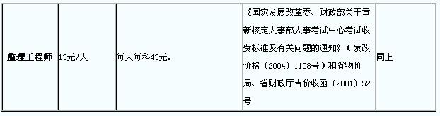 摘要 2013年吉林監理工程師考試費用:每人每科43元,另每人13元報名費