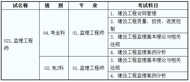 監理工程師執業資格考試設:《建設工程合同管理》、《建設工程質量、投資、進度控制》、《建設工程監理基本理論與相關法規》、《建設工程監理案例分析》4個科目。