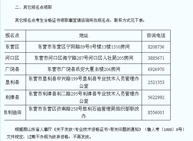 其它報名點考生合格證書領(lǐng)取事宜請咨詢所在報名點,聯(lián)系方式見下表:
