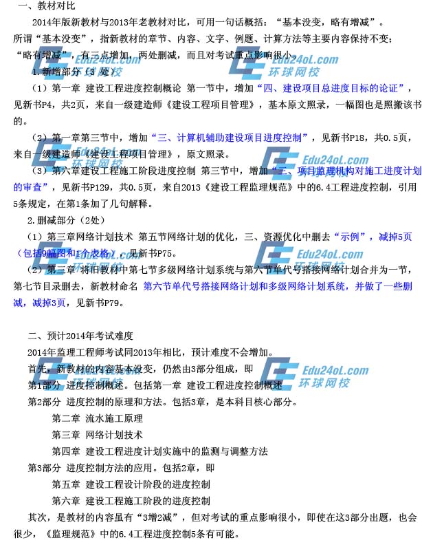 摘要 環球網校對工程建設監理《進度控制》新舊教材變更的說明。