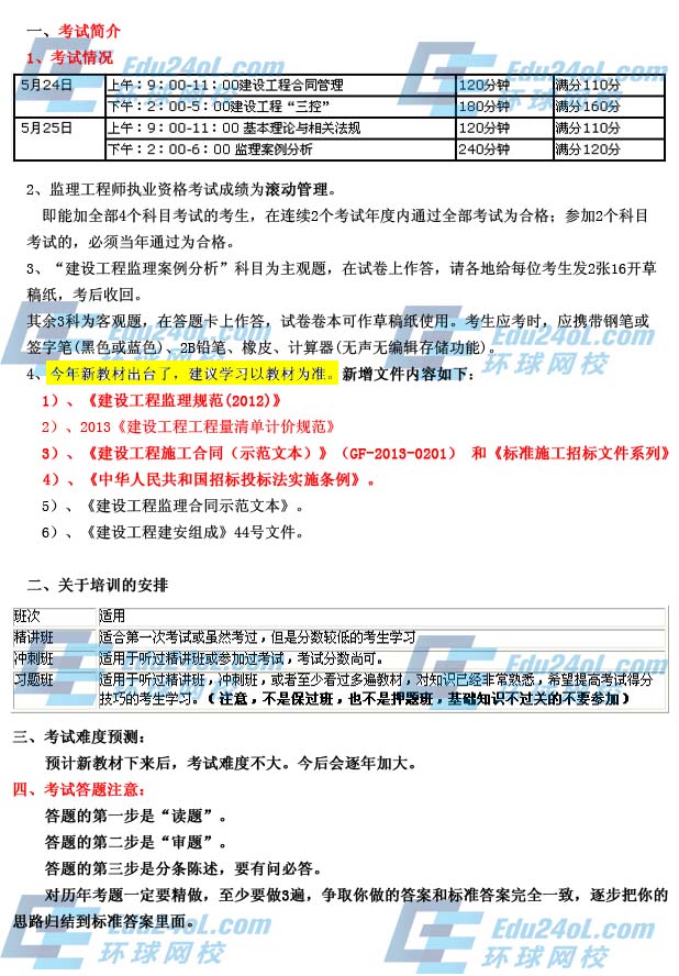 2014年監(jiān)理工程師考試將于5月24日-25日舉行,而2014年監(jiān)理教材終于迎來五年來一次重大改版。對此環(huán)球網(wǎng)校工程教研組就2014年監(jiān)理工程師考試《工程建設監(jiān)理案例分析》教材變化調(diào)整情況作出了解讀: